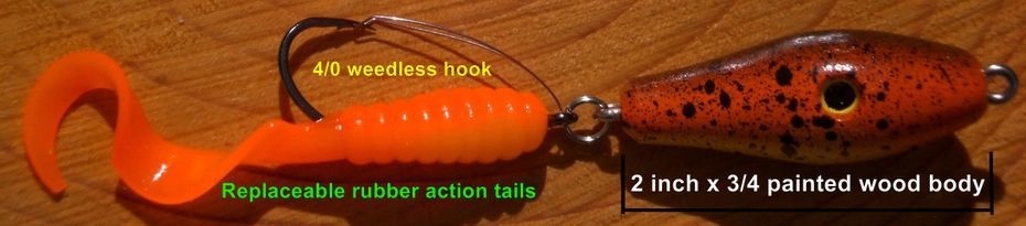 D.B.Young Jr, took his handcrafted style painted wood lure, and matched it with a weedless hook.